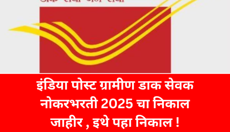 इंडिया पोस्ट ग्रामीण डाक सेवक नोकरभरती 2025 चा निकाल जाहीर , इथे पहा निकाल !