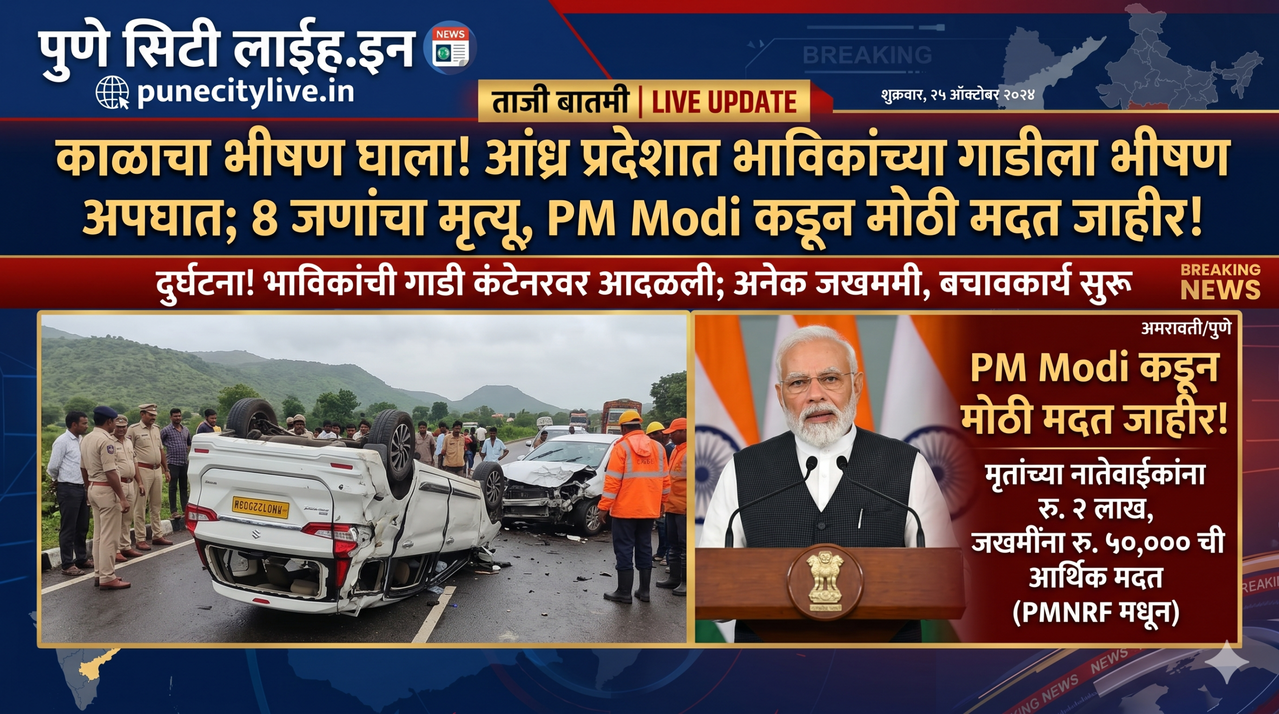 काळाचा भीषण घाला! आंध्र प्रदेशात भाविकांच्या गाडीला भीषण अपघात; 8 जणांचा मृत्यू, PM Modi कडून मोठी मदत जाहीर!