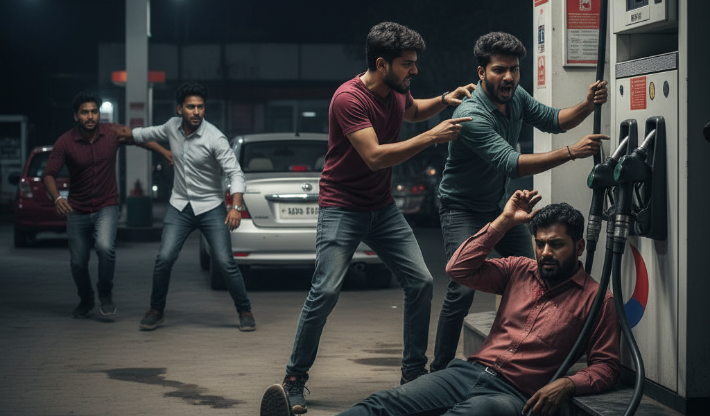 प्रप्त माहितीनुसार, दिनांक ३० ऑगस्ट २०२५ रोजी रात्री १२:२५ वाजण्याच्या सुमारास, देवेंद्र अॅटो लायन्स, भारत पेट्रोल पंप, भंडारा हॉटेल शेजारी, गवते वस्ती, मेदनकरवाडी, ता. खेड, जि. पुणे येथे ही घटना घडली. फिर्यादी सचिन शिवाजी बिरादार (वय ३०), जे पेट्रोल पंपावर नोकरी करतात, वाहनांमध्ये पेट्रोल भरण्याचे काम करत होते. त्यावेळी आरोपी अतुल अर्जुन तांचे (वय १९, रा. चाकण), सोहम श्रीकांत माने (वय १८, रा. वराळे) आणि ओंकार सुरेश बागल (वय २०, रा. देहू गाव) यांनी फिर्यादीकडे ९० रुपयांचे पेट्रोल फुकट भरून घेतले.