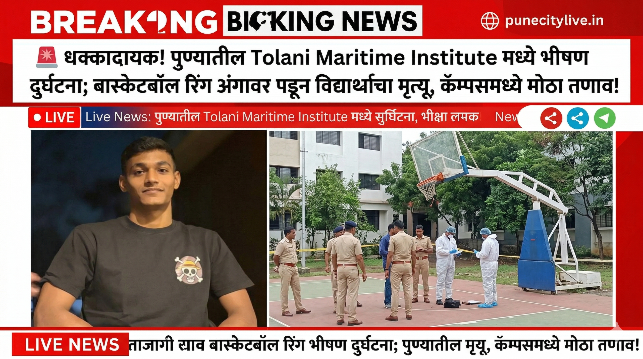 धक्कादायक! पुण्यातील Tolani Maritime Institute मध्ये भीषण दुर्घटना; बास्केटबॉल रिंग अंगावर पडून विद्यार्थ्याचा मृत्यू, कॅम्पसमध्ये मोठा तणाव!