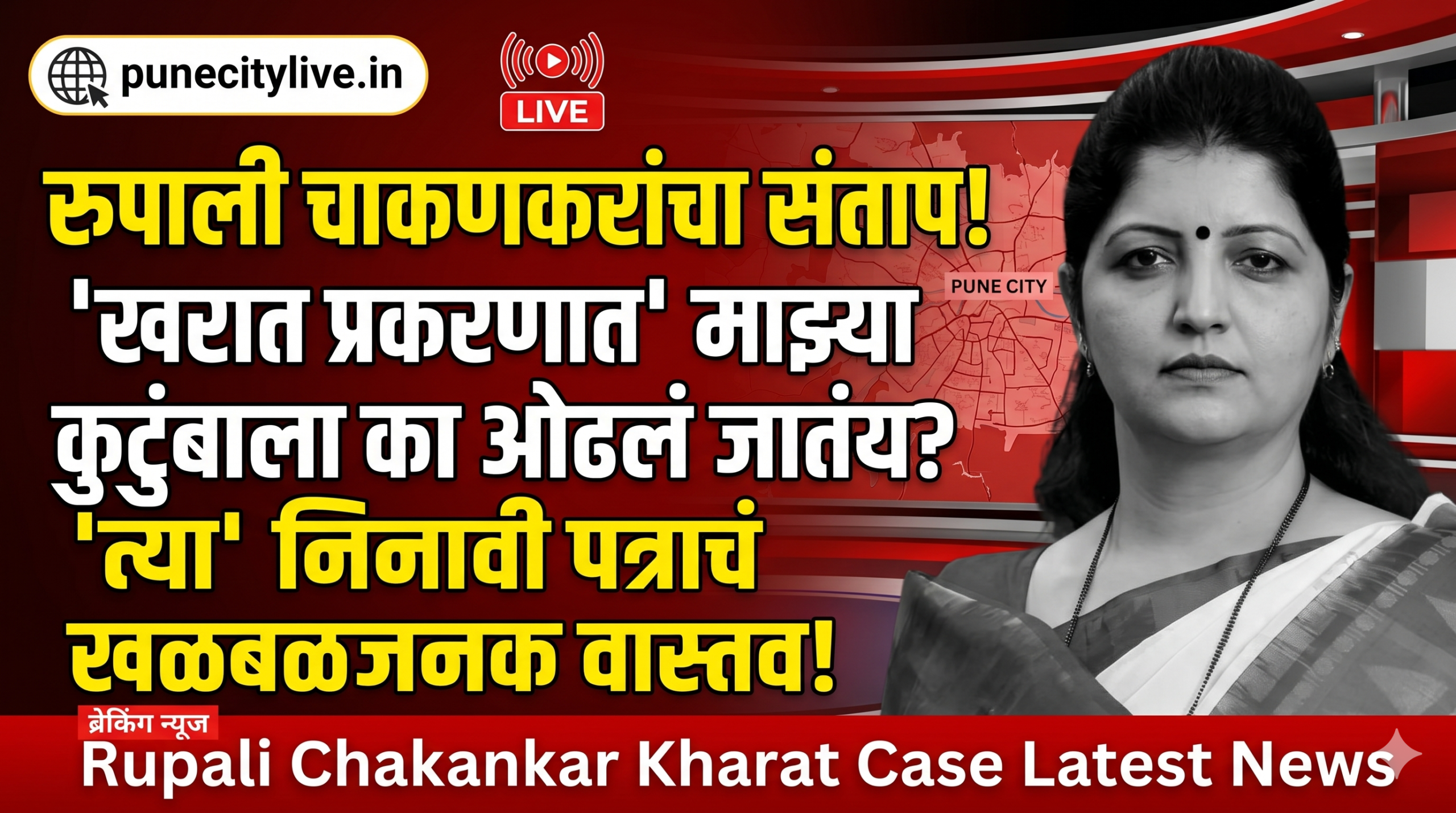 Rupali Chakankar Kharat Case Latest News: महाराष्ट्र राज्य महिला आयोगाच्या अध्यक्षा रुपाली चाकणकर सध्या एका मोठ्या वादाच्या भोवऱ्यात सापडल्या आहेत. गेल्या २८ दिवसांपासून त्यांच्यावर आणि त्यांच्या कुटुंबावर होणाऱ्या आरोपांमुळे राजकीय वर्तुळात मोठी खळबळ उडाली आहे. अखेर, या सर्व प्रकरणावर चाकणकरांनी आपली आक्रमक भूमिका मांडली असून, हे सर्व ‘राजकीय षडयंत्र’ असल्याचा दावा केला आहे. ‘खरात प्रकरणात’ नाव ओढले गेल्याने त्यांनी विरोधकांसह माध्यमांनाही काही बोचरे प्रश्न विचारले आहेत. नक्की काय आहे हे संपूर्ण प्रकरण? पाहा सविस्तर माहिती.